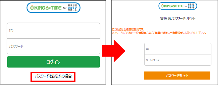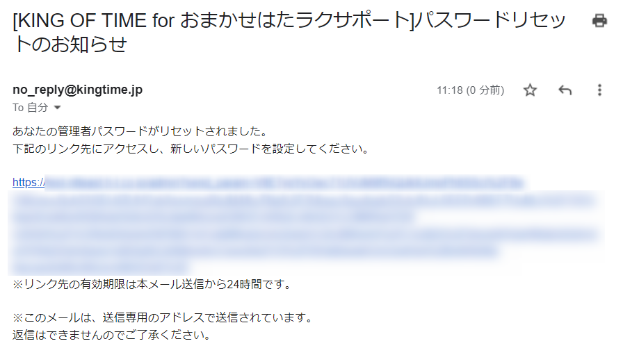 件名:[KING OF TIME for おまかせはたラクサポート]管理者パスワードリセットのお知らせ