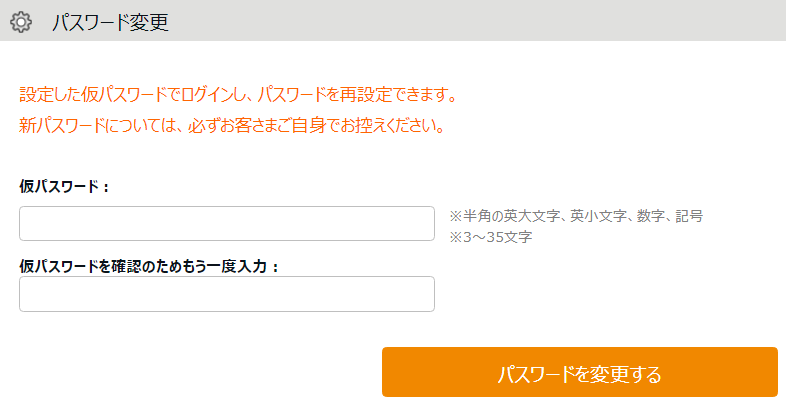 1. [パスワード変更]をクリックすると、仮パスワードの入力画面が表示されます。