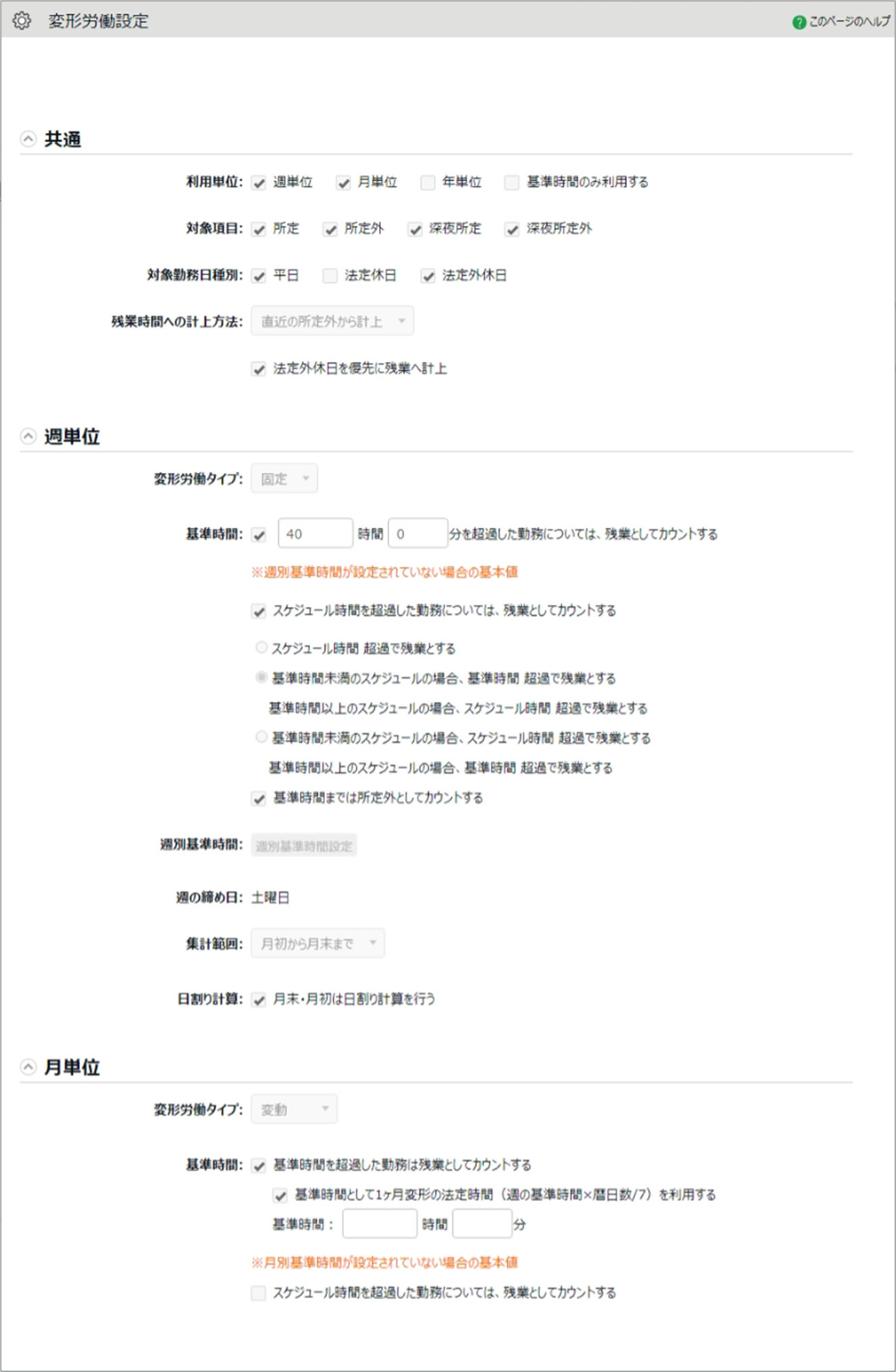 Q「1ヶ月単位の変形労働」設定方法(推奨設定)