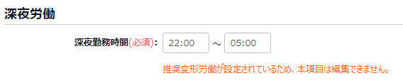 「深夜勤務時間」が22:00~翌日5:00に設定されます。