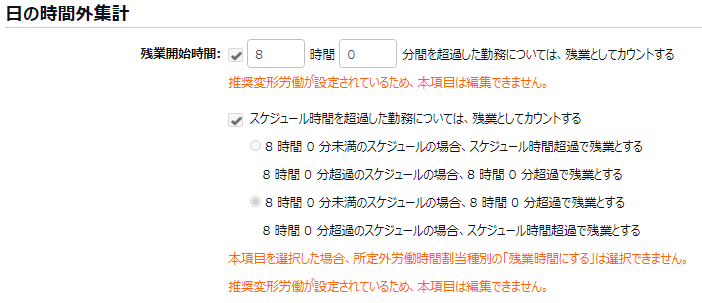 以下の条件をすべて満たしている場合に限り、「1ヶ月単位の変形労働」の推奨設定を設定できます。