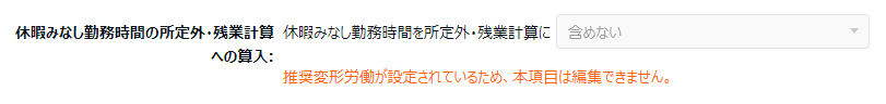 ※内部設定によっては、項目名が「休暇みなし勤務時間の残業計算への算入」と表示されます。