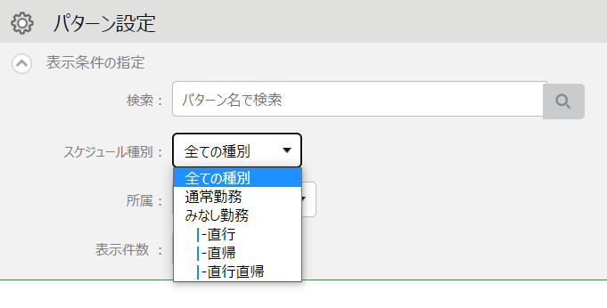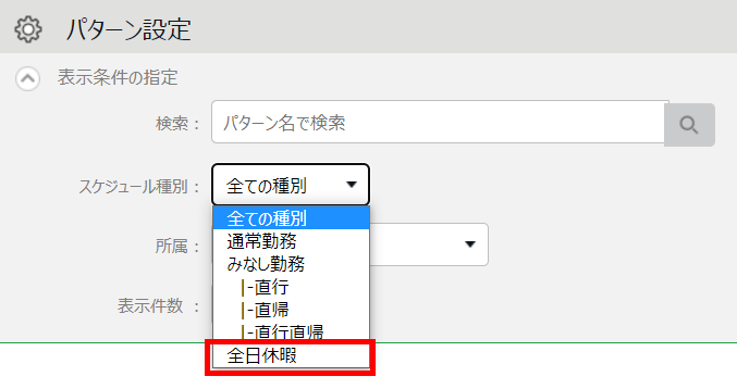 「表示条件の指定」欄で、「スケジュール種別」の選択肢をご確認ください。