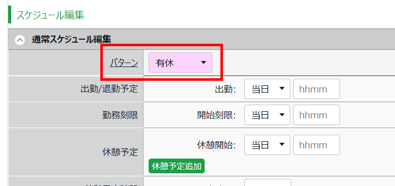 選択肢に「全日休暇」がある場合は、「パターン使用」の環境です。