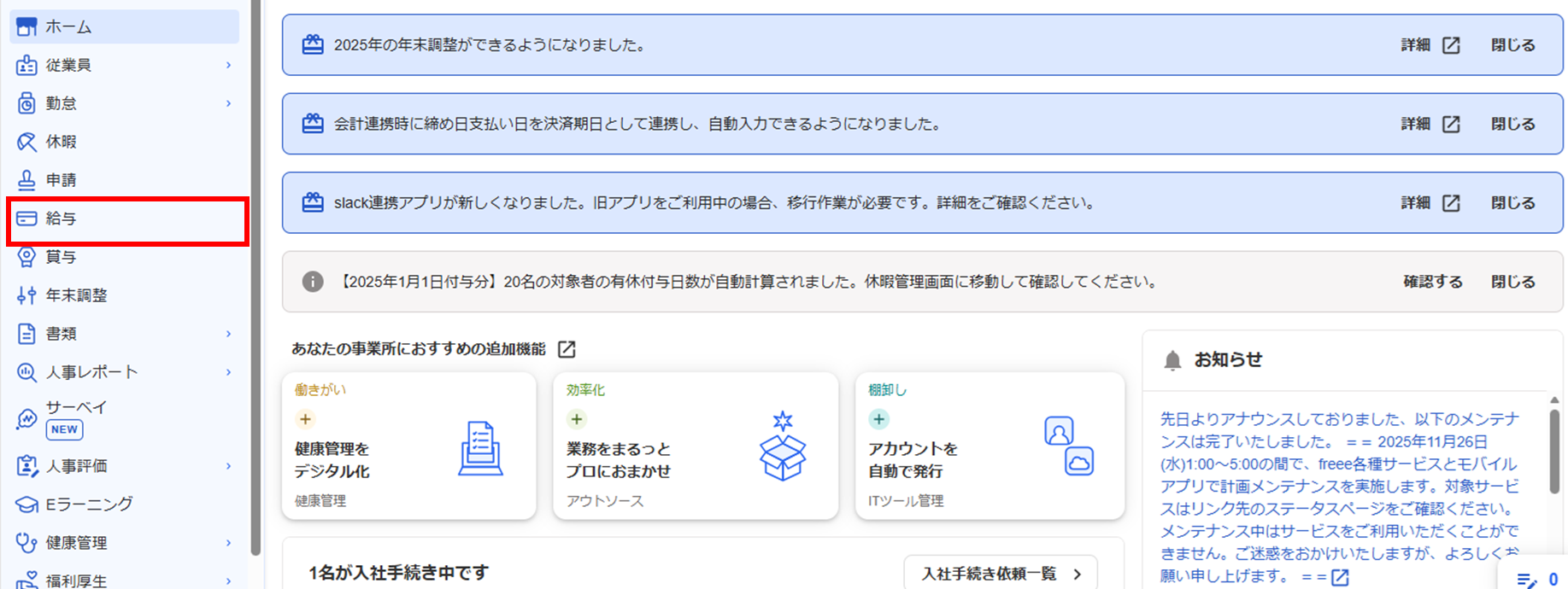 ホーム画面左側より給与をクリックします。