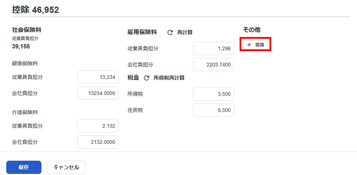 4,還付ですが、支給ではなく控除のセクションにスクリールし「その他」の+追加をクリックします。