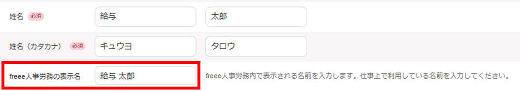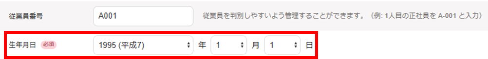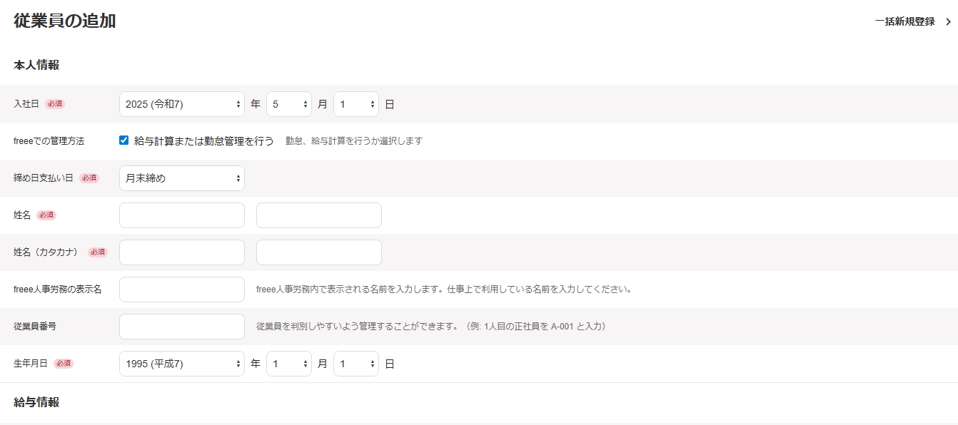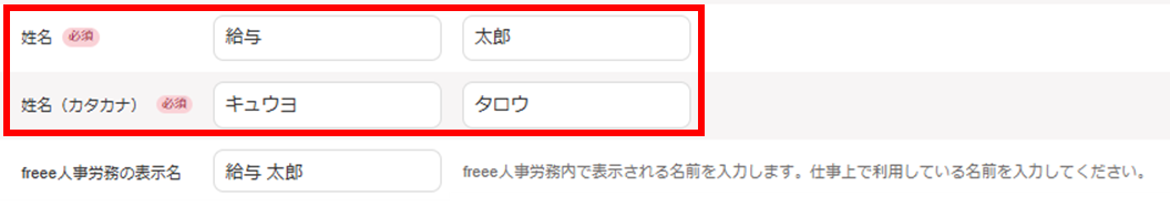 ❶ Step0. 従業員の追加画面を開く で画面を開いたら、本人情報を設定していきます。