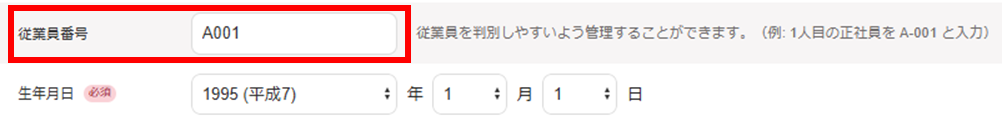 • 同姓同名の従業員がいる場合など、判別しやすいよう管理できます。