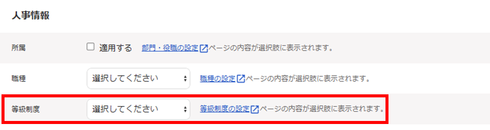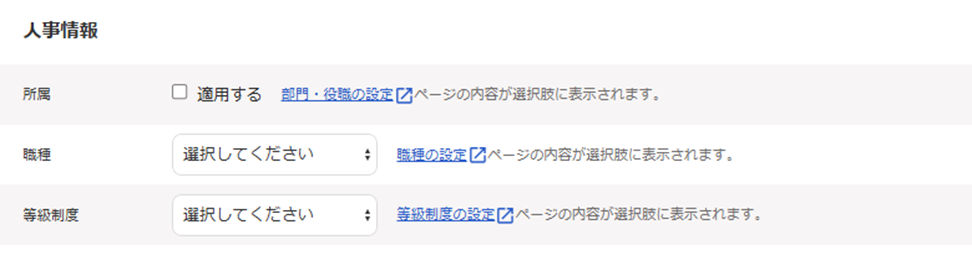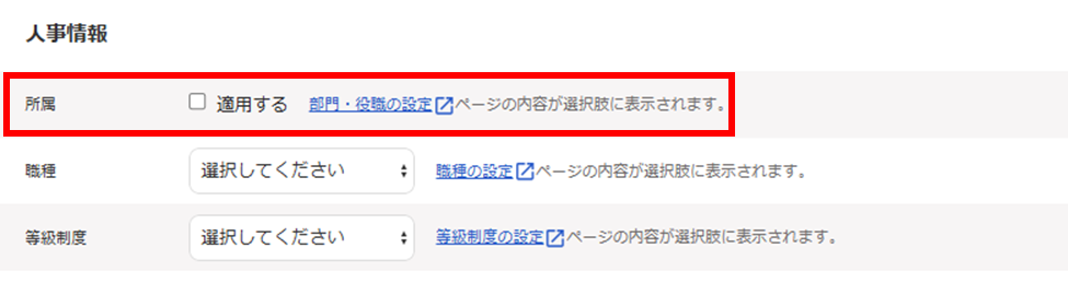 部門・役職の設定ページの内容が選択肢に表示されます。