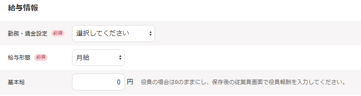 º 0のままにします。(従業員追加後のステップにて、役員報酬を設定します)