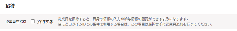 ✔を入れると従業員を招待でき、自身の情報の入力や給与情報の閲覧、勤怠の入力・打刻ができるようになります。
