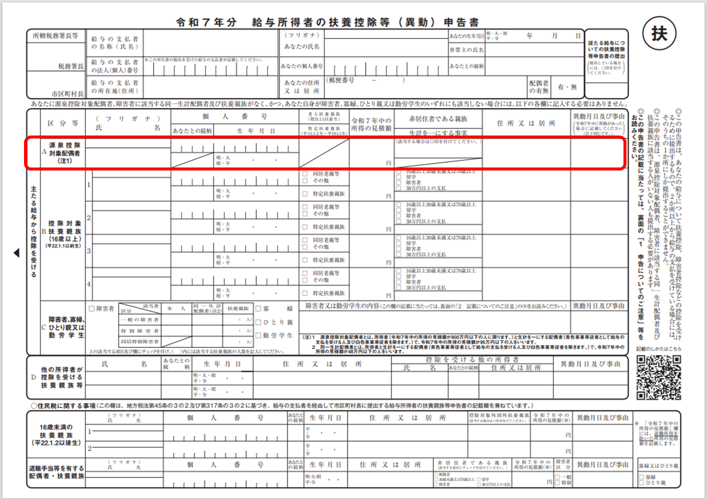 »「A 源泉控除対象配偶者」欄に反映されない場合