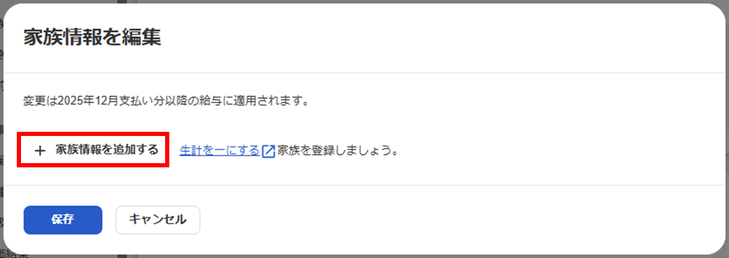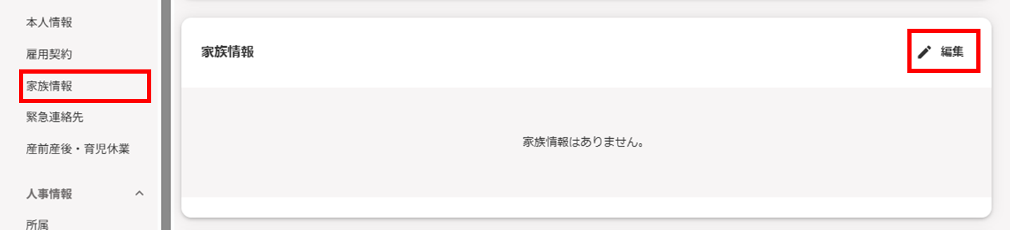 家族情報は、従業員の所得税の計算に使用したり、家族の社会保険に関する書類を提出したりする際に使用します。