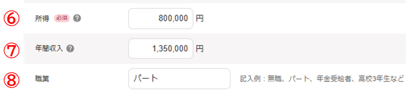 給与だけでなく年金収入、傷病手当金、失業等給付金も含んだ、年間の目安額を入力します。