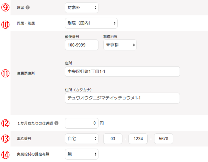 従業員本人と同居しているか、別居の場合は国内と国外のどちらに住んでいるかを選択します。