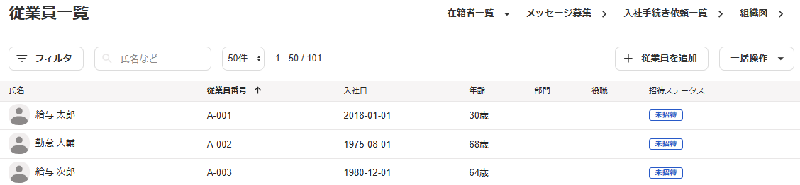 ❷「従業員一覧」画面で、情報を更新したい従業員を選択します。