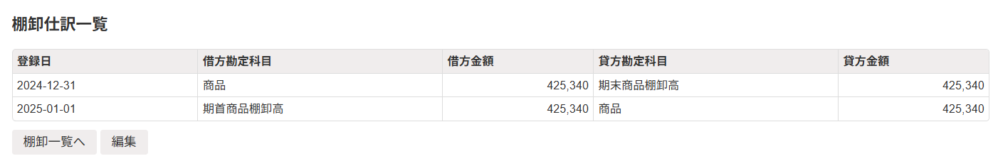 自動作成された期首棚卸の振替仕訳がすでにある場合は削除されます。