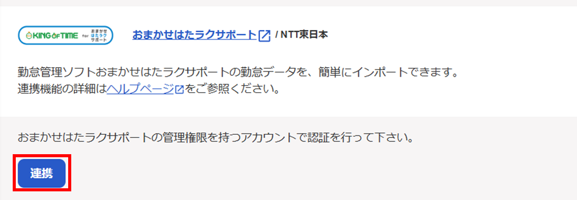 ❹ KING OF TIME for おまかせ はたラクサポートとの連携が完了します。