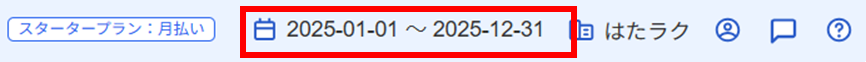 現在の会計期間は、freee会計の画面右上に表示されています。