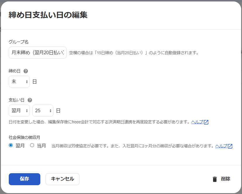 本ページでは、はじめてfreee人事労務で給与計算を行ったが、従業員の「締め日支払い日」の設定を誤っており、変更したい場合の操作手順について紹介します。