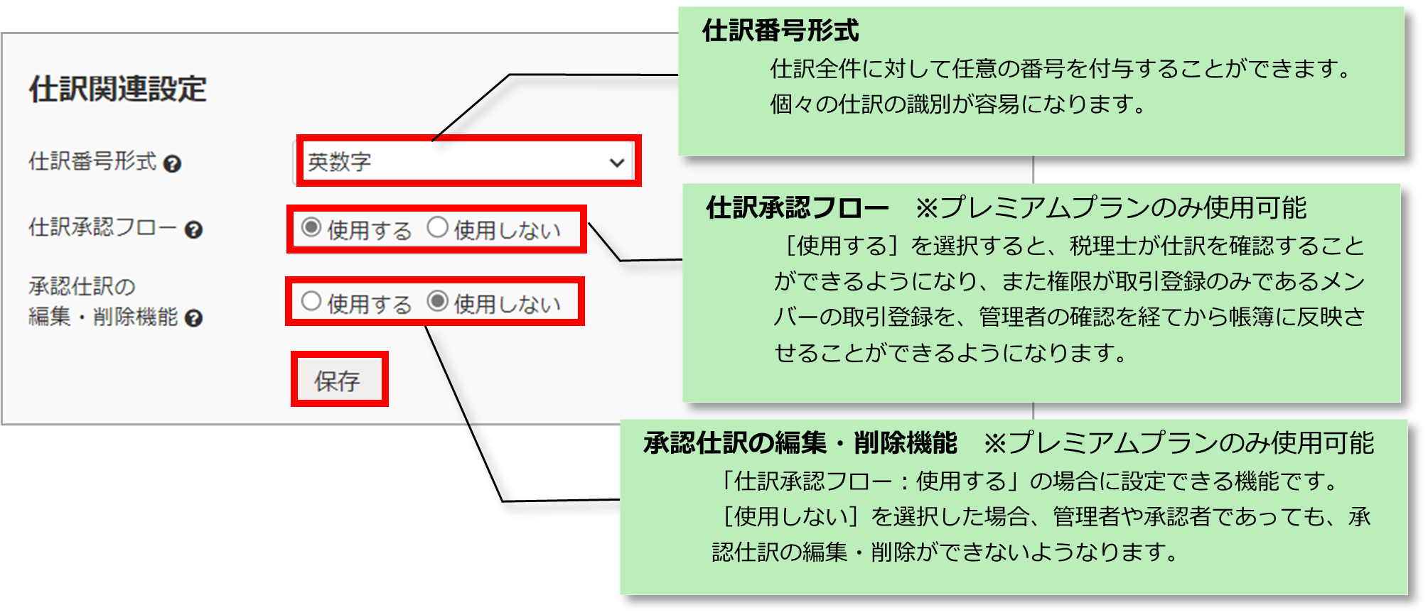 「固定資産台帳の設定」画面で、必要な項目を設定の上[保存]をクリックします。
