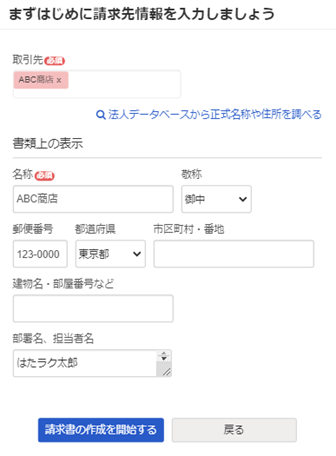 また、請求書の作成前に自社情報や振込先口座などを登録しておくことで、